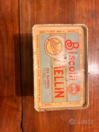 Aggiungi un tocco di nostalgia alla tua collezione con questa splendida scatola di latta originale Biscotti Mellin del 1957.