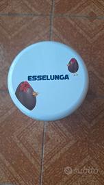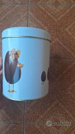 Scatola in latta da collezione, marcata Esselunga. Simpatica scatola pasquale, di colore bianco con disegni di uova di cioccolato. In buone condizioni. Pezzo da collezione. Misure: diametro 11 cm, altezza 14 cm. Disponibili molte altre scatole in latta da collezione