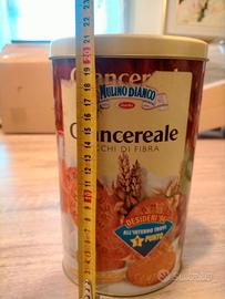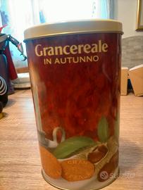 vendo scatola grancereale in autunno mulino bianco in latta anno 94/95 ..nella parte davanti ha una sua etichetta originale che se non interessa si può togliere