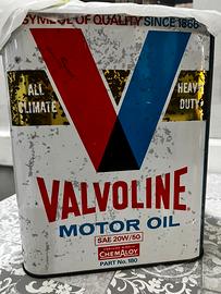 Latta olio valvoline anni 70 oggetto Vintage con i suoi segni del tempo, ma conserva ancora i suoi colori, …ottimo come arredo officina o tavernetta collezionismo oppure come cestino da scrivania x officina… come si vede dalle foto è stata rimossa la parte superiore