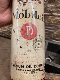Latta mobiloil D anni 30 “speciale per motociclette” formato 1 lt, purtroppo forata nella parte inferiore e nel tappo perchè utilizzata come serbatoio. Per ulteriori informazioni non esitate chiedere