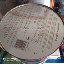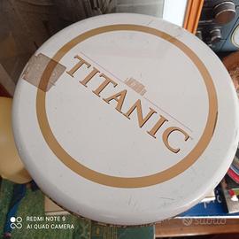 Vendo scatola di latta panettone da 1000 g Battistero risalente al 1998 anno del lancio del film " Titanic" del regista J. Cameron , con Leonardo Di Caprio Kate Winslet. Il barattolo presenta qualche inevitabile segno del tempo , ma la grafica è