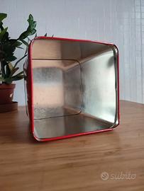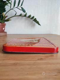 * Condizioni: Buone/ottime in relazione all’età. Presenta alcuni graffi e lievi segni del tempo, soprattutto sugli spigoli e sul bordo del coperchio, ma senza ammaccature evidenti. Presente una lieve piegatura nel coperchio, impercettibile una volta chiusa sulla scatola. I colori sono ancora brillanti, la struttura solida. Internamente integra e lucida.