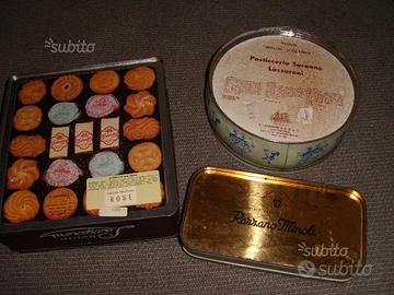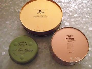 Sei latte vintage da collezione : due latte Lazzaroni pasticceria , una cioccolatini Razzano Minoli - Torino - una Baratti - Torino, una Dufour caramelle ed una Ferro e Groder . Buono stato di conservazione . Spese di spedizione a parte.