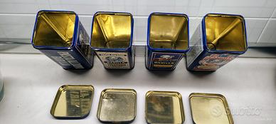 ex dipendente Barilla ha conservato gelosamente nel corso dei decenni queste latte. Sono assolutamente perfette colori nitidissimi assenza di ruggine la rarità di conservazione lo si deduce anche dalla presenza del bollino di garanzia presente sul coperchio. Foto chiare interni esterni per la massima trasparenza, introvabili con queste caratteristiche. Richiesta della serie completa €100 + 15 di spedizione