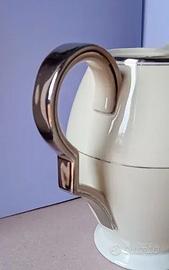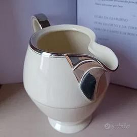 Manifattura H& C ( Haas Czech), Chodau (Czechoslovakia ) Anni ''40 Elegante e raffinata lattiera in porcellana e argento in stile Art Deco. Perfettamente conservata. Vedi foto. orlo cm 7 larghezza cm 17 altezza cm 15.