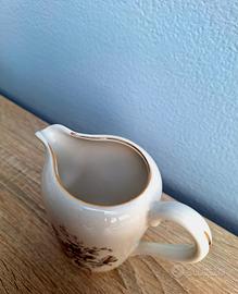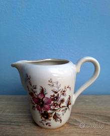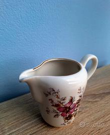 Splendida lattiera/cremiera vintage del 1950 in pregiata porcellana bianca, marchio PG (Pierino Ghezzi). Il pezzo si distingue per l'elegante "Stile Paris", caratterizzato da un raffinato bouquet floreale nei toni del rosa e del marrone.