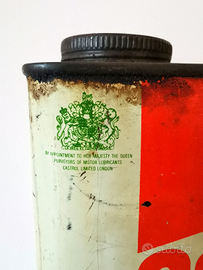 Bellissima lattina di olio motore in ferro usata e vuota Castrol GTX da 1 gallone (misure 25x15x10 cm)