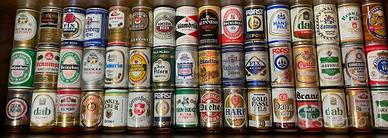 Collezione di circa 500 lattine di birra degli anni 70 e 80 provenienti da tutto il mondo.