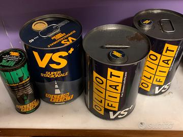 Vendo lattine OLIO FIAT in unico lotto, così composto: 1 Latta 5 litri Multistrada (vuoto) 1 Latta 5 litri w20 integra sigillata 1Latta 5 litri w20 aperta , na piena di ilio nuovo 1 Lattina 1 litro HPX integra. Posso spedire