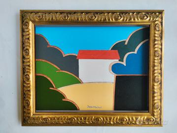 Lauro Iaccarino, "La casa in campagna", acrilico su tela, 30x40 cm. Fondo di magazzino, otto stato di conservazione. Viene venduto senza cornice. La cornice in foto viene venduta su richiesta a 35€ e richiede un minimo intervento per essere adattata al telaio.
