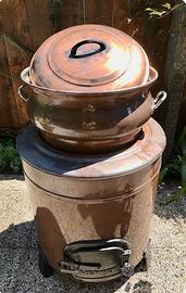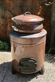 Antica lavabiancheria Merker in rame del 1929 . Completa in condizioni eccellenti , altezza 120 cm. diametro 90 cm. circa peso circa 60 kg. NO SPEDIZIONE ! Solo ritiro zona Verbania è anche possibile consegna a domicilio entro 100 km. ( spese di trasporto a parte ) Trattabile