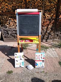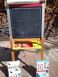 Lavagna da un lato magnetica con le varie lettere e i numeri con calamita mentre dall'altro lato si può scrivere con i gessetti.