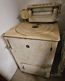 Vendo lavatrice vintage originale con marchio BTH, modello a rullo strizzatore degli anni '50-'60. Struttura completa in metallo smaltato, completamente integra. Marchio originale visibile sulla vasca. Patina d'epoca originale.Condizioni: Usura coerente con l'età, struttura solida. Vendita così com'è - non testato il funzionamento.