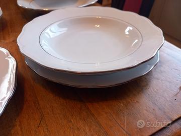 Antico set piatti in porcellana bianca filo argento LAVENO Revelli.