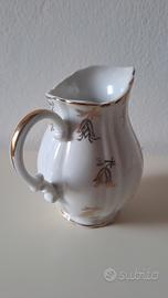 Lattiera in porcellana bianca con fiori oro, databile anni 40, del marchio Laveno Verbano,in ottime condizioni. Articolo vintage e delizioso, disponibili anche la teiera e la zuccheriera in altra inserzione.