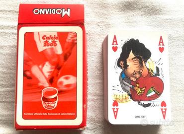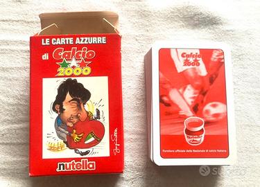 Le Carte Azzurre di Calcio 2000 - Giorgio Serra - Nutella - Modiano (2000) Carte nuove, mai usate Custodia in cartone in ottimo stato 54 carte da gioco + 1 di istruzioni Caricature di Giorgio Serra Mazzo distribuito con la rivista "Calcio 2000"' in concomitanza del Campionato Europeo di Calcio del 2000