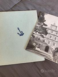 Copertina rigida con ancora blu, bandiera navale italiana illustrata all’interno e fotografie in bianco e nero delle navi militari.