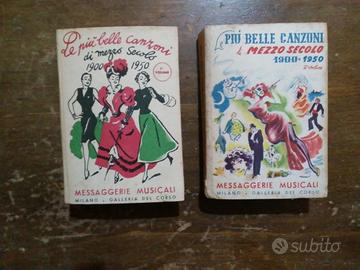 Collana " Le più belle canzoni di mezzo secolo 1900-1950" edita da Messaggerie Musicali- Milano e Campi editore tra il 1953 e il 1954 4 Volumi In blocco: 50 Euro Acquisto singolo: 14 Euro cadauno Spese di spedizione da concordare, preferibile con TuttoSubito (economico e affidabile) M