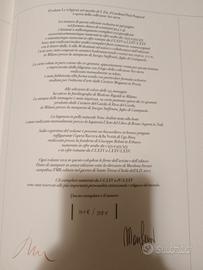 La pubblicazione, realizzata in edizione speciale a tiratura limitata da FMR e curata da Monsignor Pasquale Iacobone, rappresenta una traccia per un ragionamento a tutto campo, in senso storico e in senso geografico, sull’idea stessa di arte sacra: un affascinante viaggio entro le ragioni diverse delle religioni dell’umanità, dalla Grande Madre ai grandi monoteismi, dalla sapienza occidentale a quella orientale, un viaggio nell’idea stessa di arte e di storia dell’arte. La pubblicazione vede, secondo l’ormai storica consuetudine di FMR, il testo accompagnato e reso ancor più fervido da un apparato di immagini che documentano come non solo, secondo le parole di Arnold Toynbee, non vi è civiltà che non sia stata religiosa, ma anche che non vi è civiltà che non abbia espresso la propria religiosità in opere d’arte. Dalla preistoria, quando senso religioso e senso artistico sono una sola cosa, all’oggi, quando anche l’arte contemporanea dopo le folate delle avanguardie è tornata a porsi la domanda fondamentale, la storia dell’arte e la storia delle religioni sono un’unica, indissolubile, straordinaria vicenda. Il volume “Le Religioni nel mondo” è arricchito dall’intervento artistico del Maestro Ugo Riva, che ha scelto di porre un sigillo sull’opera con il bassorilievo di bronzo intitolato Ricerca della Verità. Il bassorilievo, frutto di una lavorazione antica, la fusione a terra, è stato impreziosito da una gemma di vetro di Murano che rappresenta simbolicamente la luce divina ed esprime l’anelito di ogni essere umano a una verità superiore.