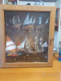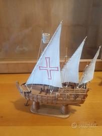 Tre caravelle in legno da collezione (Nina,Pinta,Santa Maria) Manifattura artigianalmente con minuziosa cura. Vele in stoffa e sartiame in filo.