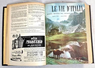 Le vie d’Italia. Rivista mensile del Touring Club Italiano, Milano, anno 1952. 1-12, gennaio-dicembre 1952, annata completa rilegata, 2 volumi. Bellissima rilegature in tutta tela con titoli in oro entro tasselli al dorso.