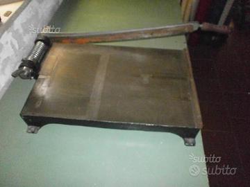 LEGATORIA: TAGLIACARTE / TAGLIACARTONE da banco. Luce utile di taglio : 60 cm. - Profondità : 90 cm. - Larghezza : 46 cm. - Altezza : 12 cm. - Peso : 34 kg. circa La Tagliacarte / Tagliacartone è PERFETTAMENTE funzionante in OGNI sua parte ed elemento. E' possibile provarla e ritirarla in zona Lanzo Torinese - TO. Non si effettua la spedizione. Per informazioni : Tel.Cell. : 347.36.22.229.