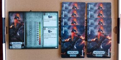 Miniatura di Enceladus dall'espansione Rise of the Titans per il gioco da tavolo della Monolith Mythic Battles Pantheon, con relative carte di attivazione e dashboard.