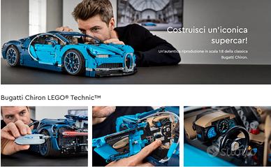 Modello dotato di luccicante carrozzeria aerodinamica, cerchi a razze con logo, pneumatici a basso profilo e dischi dei freni dettagliati. L'abitacolo accessibile è dotato di cambio Technic a 8 rapporti e leva del cambio a paletta mobile, più un volante con l'emblema Bugatti. Inserisci la chiave della velocità massima per spostare l'ala posteriore attiva dalla posizione di guida a quella della velocità massima. Il cofano posteriore offre un "assaggio" del dettagliato motore W16 con i pistoni mobili, mentre sotto il cofano scoprirai un numero di serie univoco e un compartimento compatto contenente un'elegante ventiquattrore Bugatti. Questo modello in scala 1:8 è dotato di una classica livrea blu a doppia tonalità Bugatti che riflette il colore distintivo del marchio e una serie di adesivi per aggiungere ulteriori dettagli. Il set è fornito in una confezione di lusso e include un libretto del collezionista a colori con istruzioni per la costruzione complete.