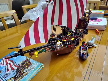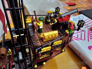 Il set è incompleto, manca il jolly roger originale. Tutti gli altri pezzi sono originali e/o sono stati sostituiti con la massima cura. La nave è in ottime condizioni, sebbene le vele siano un po' piegate a causa trasloco e incuria della ditta. Il set non presente danni o scoloriture ed è compreso delle istruzioni originali. NIENTE SCATOLA.