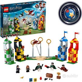 Ci sono 6 minifigures: Harry Potter, Hermione Granger, Severus Piton, Oliver Baston, Lucian Bole e Marcus Flitt. Il set contiene anche le torri delle case di Grifondoro, Serpeverde, Corvonero e Tassorosso, le tribune e tante funzioni di gioco, oltre a una base con un lancia-bolidi e tre pali con funzione di portiere mobile per proteggere gli anelli.