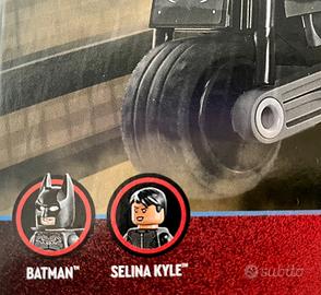 2 minifigure: include le minifigure di Batman(TM), con mantello di tessuto, e Selina Kyle(TM), un elemento Batarang(TM), una pistola arpionante, una catena, una gemma e un Bat-Segnale(TM) che si illumina al buio