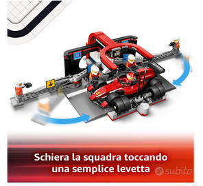 Informazioni su questo articolo Macchina giocattolo LEGO F1: porta ad un nuovo livello di giochi con le auto da corsa per bambini e bambine da 6 anni in su, con il set Pit Stop e Meccanici con Monoposto Ferrari F1 LEGO City da costruire Cosa c’è nella scatola? Tutto ciò di cui i giovani hanno bisogno per costruire un pit stop, e una macchinina Ferrari da Formula 1, oltre alle minifigure del pilota e dei 4 meccanici ai box Un set di veicoli giocattolo LEGO con funzioni divertenti: guida l’auto sportiva al pit stop e premi una leva per spostare i meccanici, per un cambio gomme turbo Set di macchine LEGO con accessori per un’azione al pit stop realistica: gli accessori per le minifigure LEGO includono attrezzi, gomme slick nuove e pistole per le ruote Una divertente idea regalo di compleanno per bambini e bambine: sorprendi il tuo pilota in erba con questo set di gioco a tema F1 LEGO City, che farà felici gli amanti delle macchine giocattolo e delle auto da corsa LEGO da costruire Divertimento con la costruzione digitale: questo pit stop in miniatura contiene istruzioni nell’app LEGO Builder, dove i piccoli possono salvare i set, monitorare i progressi, ingrandire e ruotare i modelli in 3D mentre li costruiscono