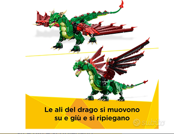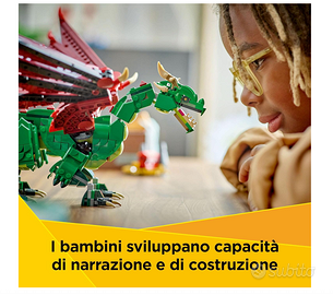 3 creature medievali in 1 scatola: il del giocattolo Drago Medievale 3 in 1 LEGO Creator, è un gioco per bambini bambine da 9 anni in su con cui costruire e ricostruire 3 diversi giocattoli di animali mitici, utilizzando gli stessi mattoncini