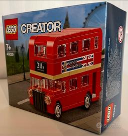 Costruisci questo classico autobus dotato di ruote funzionanti, finestrini e fari trasparenti. Applica gli adesivi della targa, del numero della corsa e quelli pubblicitari. Con dettagli autentici, questo fantastico autobus d'epoca è un regalo perfetto per tutti gli appassionati dei set modulari LEGO® Creator e di Londra.