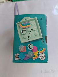 LEGO DOTS 41940 - Bag Tag Unicorno, un kit creativo progettato per permettere ai bambini di personalizzare il proprio portachiavi per borse o zaini. Caratteristiche principali: Contenuto:Include un solido cubo con un anello per il fissaggio, uno strumento a forma di chiave per rimuovere le tessere e numerose tessere colorate, alcune delle quali glitterate o con stampe speciali per creare il muso dell'unicorno. Personalizzazione:Il cubo presenta facce su cui è possibile incastrare le tessere per creare disegni unici, seguendo le idee suggerite sulla confezione o inventandone di nuove. Dimensioni:Una volta assemblato, il portachiavi misura circa4 cm di altezza, 3 cm di larghezza e 3 cm di profondità. Età consigliata:Adatto per bambini dai6 anni in su.