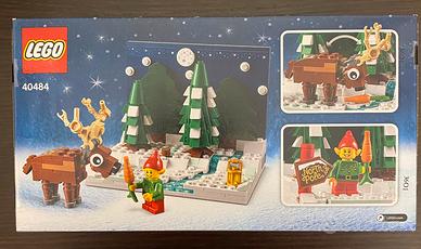 È una gelida notte al chiaro di luna nel cortile di Babbo Natale, dove un elfo premuroso sta dando da mangiare una carota a una renna accanto a un ruscello freddo e limpido. Questo bellissimo scenario include un cartello del Polo Nord coperto di neve e alberi, oltre alla lanterna dell’elfo.