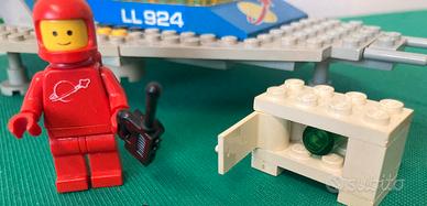 Lego LL924 Space Transporter 1979 usato completo senza scatola nè istruzioni. Alcune parti presentano scolorimento o ingiallimento del tempo, forklift con piastra spaccata e senza molla, globo logo space su brick 1x2 di colore grigio