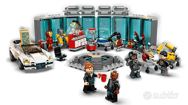 Entra con Tony Stark, Pepper e Nick Fury nella sala delle armature di Iron Man Con 8 spettacolari minifigure, l'officina e l'auto sportiva di Tony Stark