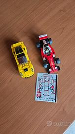 Le macchine sono quasi complete, alla corvette mancano i pezzi dell alettone e dei fanali posteriori , alla f1 mancano pochissimi pezzi e da attaccare gli adesivi.