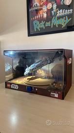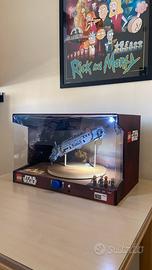 LEGO Star Wars Store Display – Set 75140 Resistance Troop Transporter (Official Retail Showcase) Original LEGO Star Wars retail display unit used in stores for the promotion of set 75140 (Resistance Troop Transporter). This is NOT a regular set, but an authentic store showcase display (“ECO box SW”), produced by LEGO Production s.r.o. and dated 12/11/2015, prior to the official release of the set. These displays were never available for public sale and were intended exclusively for in-store use. Key Features: - Fully functional rotating mechanism (activated by front knob) - Working internal lighting system - Original display case (plexiglass) included - Model professionally assembled (as per retail displays) - Clean interior, very well preserved condition - Original labels and production stickers still attached Condition: Excellent overall condition. The interior is clean and dust-free. The display has been carefully preserved over the years. Minor signs of age may be present on the outer case, consistent with a retail display item. Important Notes: - Marked by LEGO as “NOT A TOY” - Label states: “This showcase is not allowed to be sold to 3rd party” (standard for store displays) - Extremely rare item, hard to find on the market Price: 600€ – open to reasonable offers (serious collectors only, please) Perfect for: - LEGO Star Wars collectors - Display/showroom decoration - Serious fans looking for unique, non-retail pieces A rare opportunity to own an authentic LEGO store display from the Star Wars line. Feel free to contact me for more photos or videos of the item in operation.