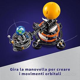 Gioco educativo con sistema solare per bambini: i fan dei pianeti, dell'astronomia, della galassia e delle costruzioni LEGO Technic, possono girare la manovella per vedere come la Terra e la Luna orbitano nello spazio attorno al Sole