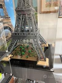 Torre Eiffel originale Lego costruita 10001 pezzi art. 10307, con teca in plexiglas 3 mm e poster posteriore stampato. Scatola nuova, istruzioni cartacee come nuove.
