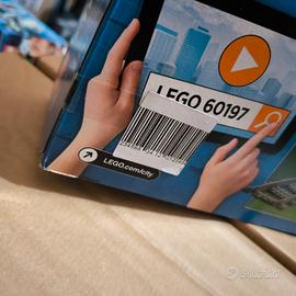 scatola con segni da scaffalature e codice barre adesivo