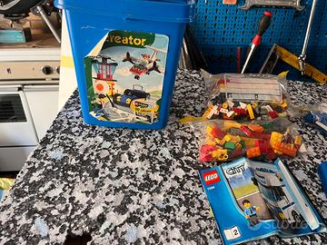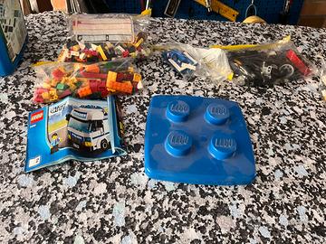 Secchiello lego con svariati pezzi. Al suo interno anche il libretto per la costruzione di un camion della polizia ma non so se completo