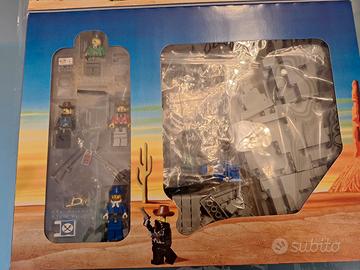 - Lego 6761 Cowboys - Bandit's secret Set completo inventariato + box in ottime condizioni (9.5/10) con un sigillo ancora integro, con vassoio cartone interno + catalogo Lego + raro poster + istruzioni + RARO Inlay in plastica con velina di chiusura. Brick e minifig condizioni Ottimissime, no crepe, scoloriture o altro. Set TOP;