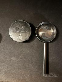 Lente d’ingrandimento con impugnatura in plastica e coperchio. Risalente agli anni 70, prodotta in unione sovietica.