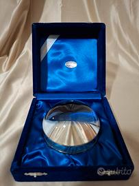Vendo elegante lente d'ingrandimento d'appoggio con base in Argento 800 lavorato. Prodotta dalla storica Argenteria Guido Gabrielli di Milano, presenta una cupola in cristallo . Oggetto vintage completo di custodia originale in velluto blu.