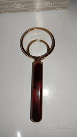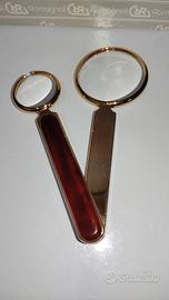 LENTE INGRANDIMENTO con meccanismo LORGNETTE (LORNIE') in OTTONE finitura lucida e impugnatura in ACETATO di CELLULOSA in colore ed effetto TARTARUGA.