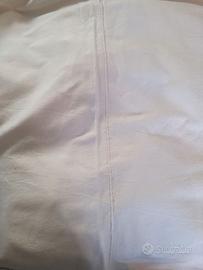 Vendo set lenzuola matrimoniale antico da corredo inizi novecento in cotone grezzo formato da: - lenzuolo sotto - lenzuolo sopra ricamate con motivo a foglie - due federe ricamate con fiocco e iniziali - una federa ricamata con motivo a foglie Presenta una leggera macchia di muffa che dovrebbe andare via con il lavaggio (penultima foto). Uno dei lenzuoli è giuntato come si faceva una volta. Non scorporo. Grazie